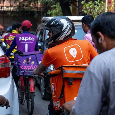Groceries delivered to your doorstep in just 10 minutes? India’s online platforms are promising this instant delivery for millions of shoppers – items at your door in between 10 and 30 mins. But behind the convenience lies a deeper story - exhausted gig workers, struggling family-run stores, and questions about the long-term sustainability of the business model. We look at the real cost of India’s quick commerce, or Q-commerce, industry. If you would like to get in touch with the show, please email: [email protected] Presented and produced by Devina Gupta (Picture: A Swiggy delivery rider and a rider for rival brand Zepto on their bikes with delivery boxes in Mumbai, India. Credit: Getty Images)