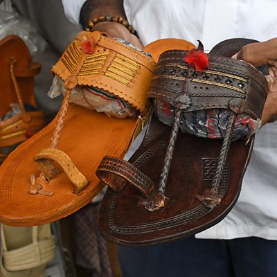 When Italian luxury brand Prada showcased leather sandals that looked a lot like India’s traditional Kolhapuri chappals, and didn't credit their roots, it sparked a debate over fair pay and recognition for local artisans. The company has since tried to make amends and has been speaking to local producers. We travel to Kolhapur, where these sandals are made to explore what this example means for the economics of luxury fashion. Presenter: Devina Gupta Producer: Andrew Clarence (Image: A shopkeeper shows a pair of Kolhapuri chappals displayed for sale at a street side shop in Maharashtra, India. Credit: Getty Images)