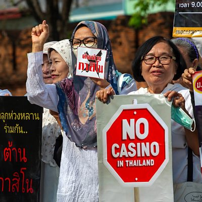 Thailand’s government has long been wary of opening up the country to gambling, imposing major restrictions on betting. Small-scale, illicit gambling is widespread in the country but now politicians want to liberalise the industry and allow casinos to set up shop. The goal is to promote tourism, but opponents argue that the gambling business is incompatible with Thai culture, which is largely rooted in Buddhist values that frown upon betting. If you would like to get in touch with the show, please email: [email protected] Presented and produced by Ed Butler (Picture: Protesters in Chaing Mai, Thailand, in April 2025, seen holding placards during a demonstration to protest the government's draft entertainment complex bill at The Phae Gate. On 13 January 2025, the Thai Cabinet approved a draft bill, setting the stage for the legalisation of casino gambling in entertainment complexes across the country. Credit: Getty Images)