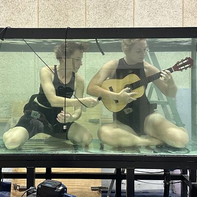 Smashing up guitars is a classic rock star activity, but how about drowning them? Seven-year-old listener Cornelius asked CrowdScience to find out what happens if you play a guitar underwater. Could this be the next avant-garde music sensation? Host and amateur musician Caroline Steel tackles Cornelius’ question with the help of one increasingly soggy guitar. The UK’s National Physical Laboratory is our first port of call, with a guitar-sized water tank at the ready, and acoustic scientists Dr Freya Malcher and Ben Ford helping tackle our questions. Since an acoustic guitar’s sound is amplified by its internal chamber, what happens as that chamber starts to fill with water? How about if the whole guitar - strings, body and all - is submerged? What difference does it make if our ears are listening above or below the water? And can special water-adapted microphones help us explore this unusual question, before our guitar disintegrates? Our guitar then heads off on tour to Denmark, where the band Between Music have teased out questions just like these for their underwater music project, Aquasonic. We talk to violinist and Innovative Director Robert Karlsson, and singer Nanna Bech, who also plays a unique subaquatic instrument. With their help, we discover how to get the best out of a submerged guitar, and find out whether other instruments are better suited to the life aquatic. Presenter: Caroline Steel Producers: Cathy Edwards and Florian Bohr Editor: Ben Motley (Photo: Caroline Steel and Nanna Bech in an Aquasonic aquarium playing a guitar)