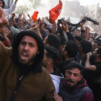 Pascale Harter introduces stories from Israel and the Gaza Strip, China's export hubs, Romania's presidential election and Vatican City. In both Gaza and Israel, people have been taking to the streets in recent weeks to demand an end to the war. But the protests have taken different forms, and as Paul Adams notes, also involve very different risks for the demonstrators taking part. Amid the ongoing trade war between China and the US, Laura Bicker speaks to Chinese traders at one of the world's biggest wholesale markets in Yiwu to find out how Trump's tariffs are affecting business. After Romania cancelled the final round of its Presidential election last year, the vote is being re-run on Sunday 4 May. The political chaos that followed the Constitutional Court's decision left a sour taste among many voters, Tessa Dunlop heard in Bucharest. Rome's trattorias and cafes are bustling with cardinals and their supporters as they deliberate the kind of leader they want as their new Pope. Veteran BBC Vatican correspondent, David Willey, has been observing the hushed conversations ahead of the conclave to be held soon in the Vatican. Producer: Polly Hope Editor: Richard Fenton-Smith Production coordinator: Katie Morrison Image: Palestinians during an anti-Hamas protest, calling for an end to the war with Israel, in Beit Lahia in the northern Gaza Strip on March 26, 2025. (Photo by AFP via Getty Images)