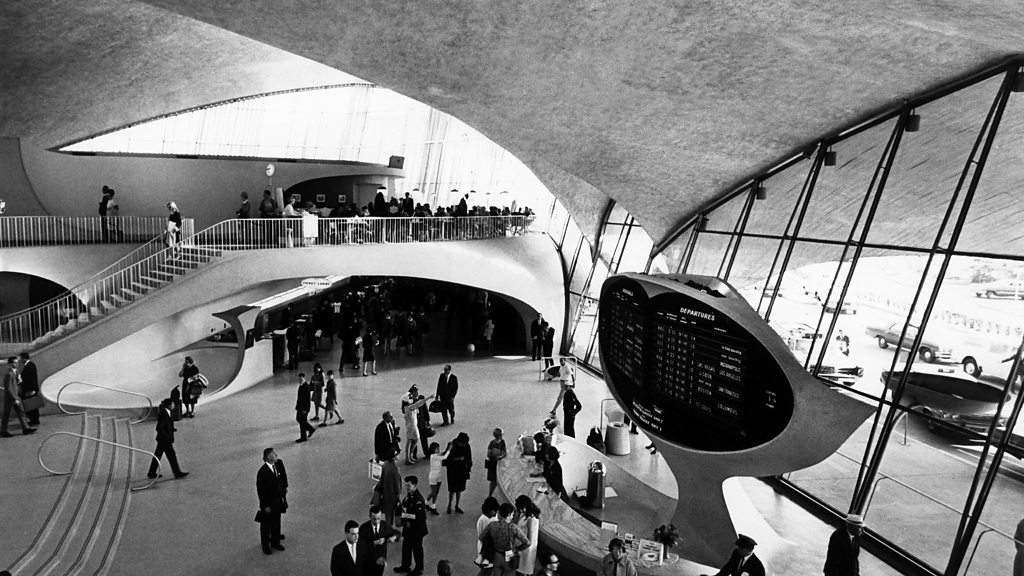 Airports: at their most basic level places to fly from to reach destinations near and far. And yet so much more. Iszi Lawrence and guests take a look at the evolution of airports, from their beginnings as military airstrips to the modern-day behemoths with their luxury shopping outlets, gardens and art galleries. The early European airports were modelled on railway stations, as that was the only blueprint for a transport hub. The public became so enthralled by air travel that airports eventually became popular as destinations in themselves. Airports today are places filled with emotion: the scene of farewells and arrivals, as well as the stress of international travel in an age of terrorism. Iszi is joined by cultural historian Alastair Gordon, author of Naked Airport: A Cultural History of the World’s Most Revolutionary Structure; Lilia Mironov, an architectural historian and air steward who wrote Airport Aura: A Spatial History of Airport Infrastructure; and architect and airport planner Su Jayaraman who teaches at the University of Westminster in London. Plus a range of Forum listeners from around the world contribute their personal experiences of airports. Produced by Fiona Clampin for BBC World Service. (Photo: John F. Kennedy International Airport, the TWA Flight Center, terminal 5, designed by Eero Saarinen. Credit: Lehnartz/ullstein bild/Getty Images)