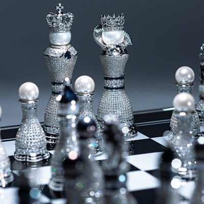 The ancient game of chess is one steeped in tradition, with a history dating back centuries. The classical form of chess is still prominent on the global stage, but streaming and online platforms have seen the game now increasingly being played online – so much so that it’s set to make its debut at the Esports World Cup later this year. Not by the Playbook’s Katie Smith finds out more about the stories behind this historic board game – from a world record holder to the designer of one of the world’s most valuable and lavish chess sets. Nigeria's Tunde Onakoya shares his story from learning to play in a barber shop to setting the world record for the longest chess match last month. He played against Shawn Martinez for 64 hours in New York’s Times Square and he’s wanting to help children in Africa with a similar story to his. Jules Gambit was a junior chess champion in her youth but found that she was struggling to make friends, so made the switch to ballet. She’s now back involved in chess and is now a rising star in the streaming community. What brought her back to chess and is streaming the future of the sport? Anthony Mathurin is no stranger to strategic games as a chess coach and a contestant on The Traitors, but is he staying faithful to the classical form of chess? Also meet the designer of one of the most valuable and lavish chess sets in the world. The Pearl Royale is estimated to cost $4 million – but what’s the story behind the design? Australian jewellery artist Colin Burn reveals all. Listen to Not by the Playbook on the BBC World Service every Saturday at 0900 GMT, or find it as a podcast wherever you get your BBC podcasts. Get in touch with us via email and use the hashtag #NBTP on social media. Photo: The Pearl Royale chess set which is made of diamonds, blue sapphires and South Sea pearls. Credit: Aaron McPolin/Colin Burn)