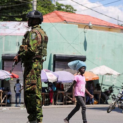 Haiti's capital, Port au Prince, is now largely under the control of armed gangs. More than a million people have been displaced from their homes and a new UN-backed force led by Kenya is struggling to restore order. But away from the headlines of chaos and gang violence, Haitians are still resisting and trying to build a life for themselves. In this special edition of the Global News Podcast, Nick Miles speaks to medics, activists and academics and asks them a simple question - why is there still hope for Haiti? (Photo: A Kenyan police officer patrols in Port-au-Prince, Haiti, as the country faces emergency food insecurity and social and political crisis, 3 October, 2024. Credit: Jean Feguens Regala/Reuters)
