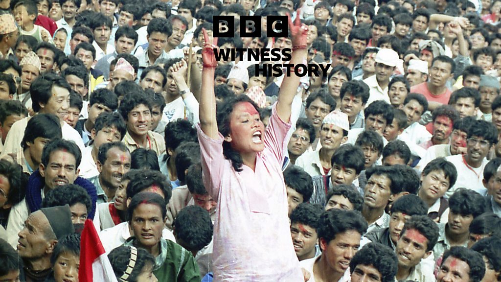 On 9 April 1990, people gathered at Khula Manch, an open stage in Kathmandu. They were celebrating the end of Nepal’s party-less Panchayat system and the beginning of multi-party democracy. Among the crowd was Durga Thapa, who had spent weeks organising and coordinating the protests. A photo of her in a sea of men, leaping up and giving the peace sign, her hands covered in red paint, came to mark the movement. She speaks to Ribika Moktan about that day and her role in Nepal’s 1990 democracy movement. Eye-witness accounts brought to life by archive. Witness History is for those fascinated by and curious about the past. We take you to the events that have shaped our world through the eyes of the people who were there. For nine minutes every day, we take you back in time and all over the world, to examine wars, coups, scientific discoveries, cultural moments and much more. Recent episodes explore everything from how the Excel spreadsheet was developed, the creation of cartoon rabbit Miffy and how the sound barrier was broken. We look at the lives of some of the most famous leaders, artists, scientists and personalities in history, including: the moment Reagan and Gorbachev met in Geneva, Haitian singer Emerante de Pradines’ life and Omar Sharif’s legendary movie entrance in Lawrence of Arabia. You can learn all about fascinating and surprising stories, like the invention of a stent which has saved lives around the world; the birth of the G7; and the meeting of Maldives’ ministers underwater. We cover everything from World War Two and Cold War stories to Black History Month and our journeys into space. (Photo: Durga Thapa celebrating in Khula Manch on the 9th of April 1990. Credit: Min Ratna Bajracharya)