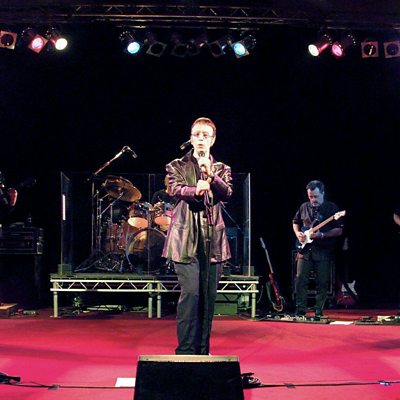 The Brothers Gibb - Barry, Robin and Maurice performing at the BBC Radio Theatre in 2001.