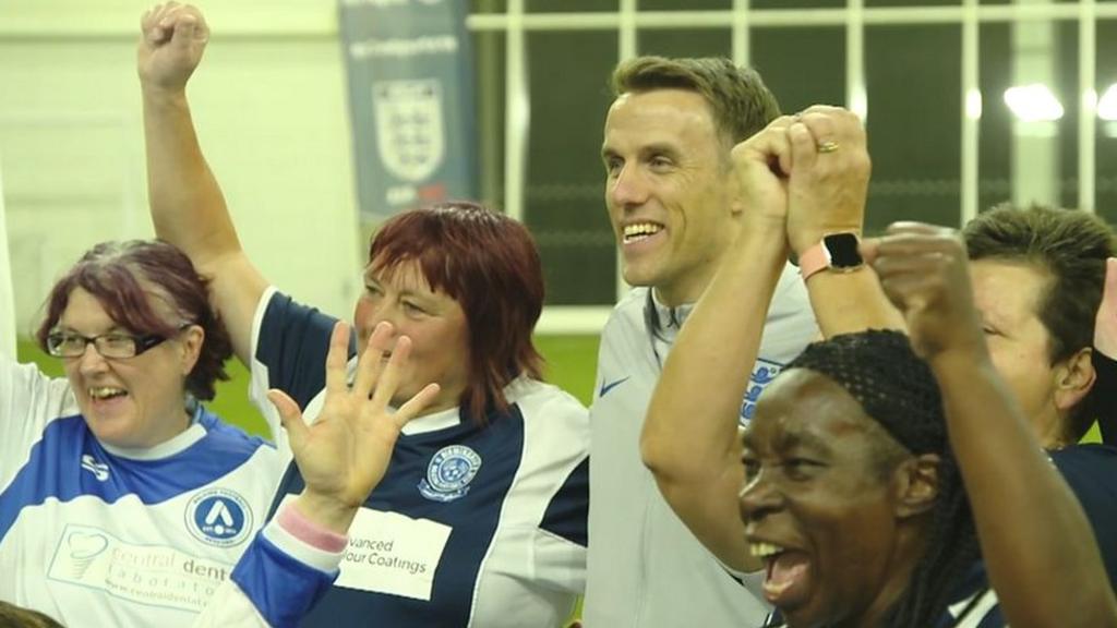 England women manager Phil Neville visits St George's Park to see women's walking football - a new category in this year's FA People's Cup - in action.