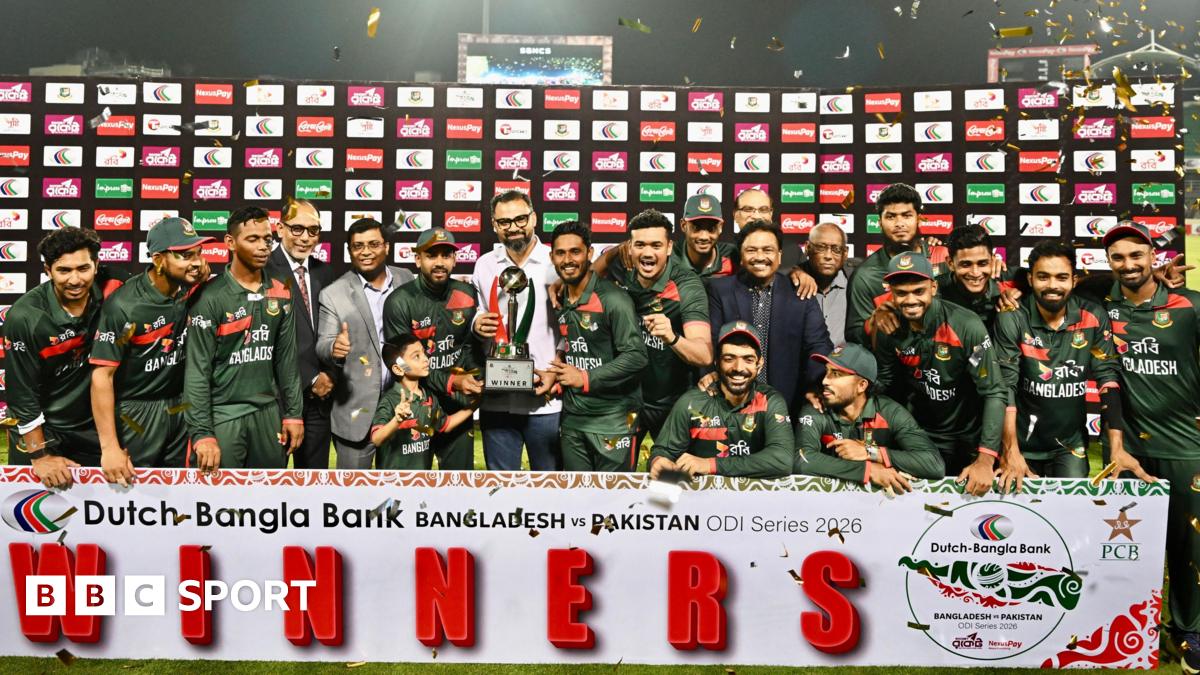 Pakistan in Bangladesh 2026Image source, Getty ImagesPublished21 February 2026Updated 15 March 2026(All games played in Mirpur)March11 1st ODI (d/n)Bangladesh won by eight wicketsScorecard13 2nd ODI (d/n) Pakistan won by 128 runs (DLS method)Scorecard15 3rd ODI (d/n) Bangladesh won by 11 runsScorecardRelated topicsPakistanBangladeshCricketMore on this storyGet cricket news sent straight to your phonePublished16 August 2025