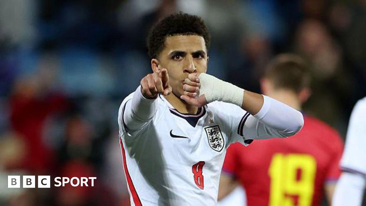 Rico Lewis celebrates scoring for EnglandImage source, AFP via Getty Images