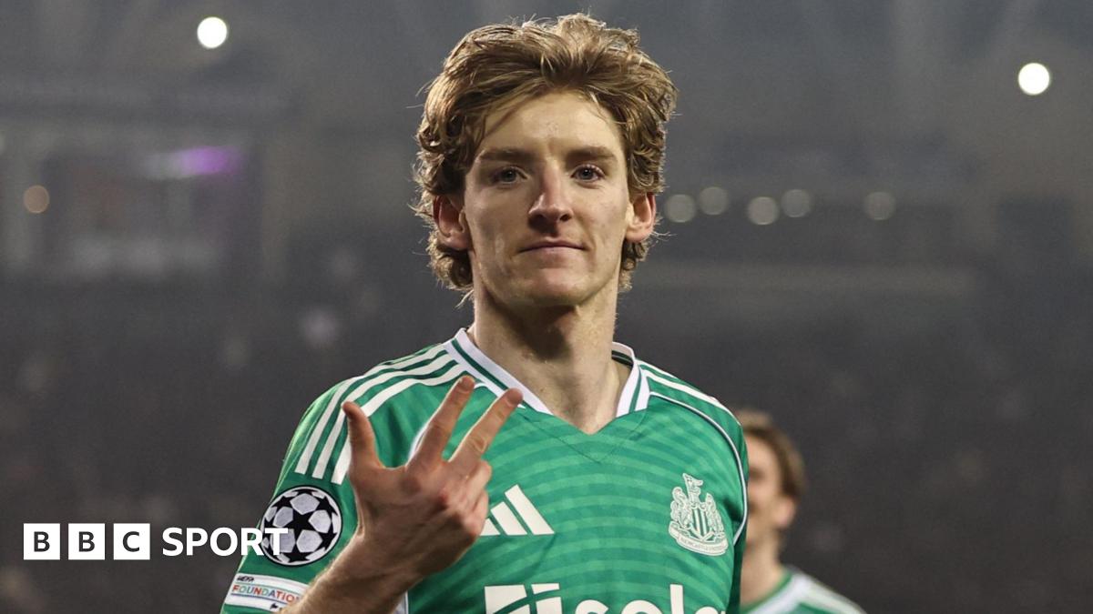 Anthony Gordon scored four goals as rampant Newcastle United blew Qarabag away to take control of their last 16 Champions League play-off tie.