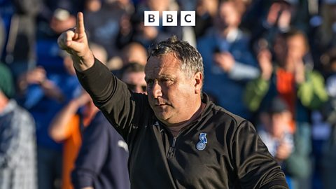 Micky Mellon reacts to a 2-0 win at home to Bristol Rovers.