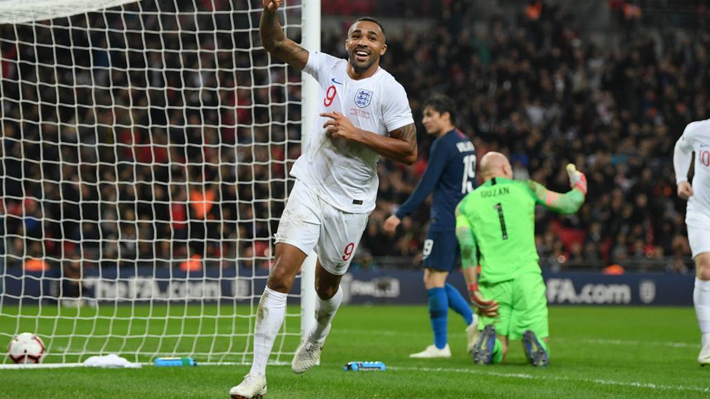 Image source, ReutersEngland striker Callum Wilson to Sky Sports: "I have no words, it hasn't sunk in at the moment. It was an opportunity for me and I just wanted to grab it with both hands. Wayne Rooney is a legend for England, to receive my shirt from him before the game was a great honour and I got to share the pitch with him as well.