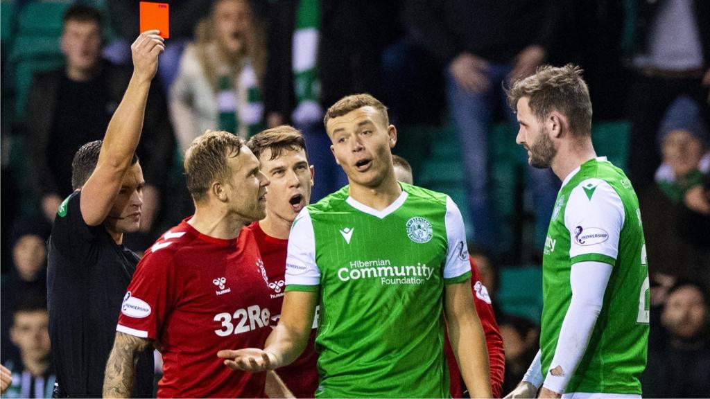 It was a fiery old evening in Leith, six yellows and a red card brandished, all but one of them for the home side.