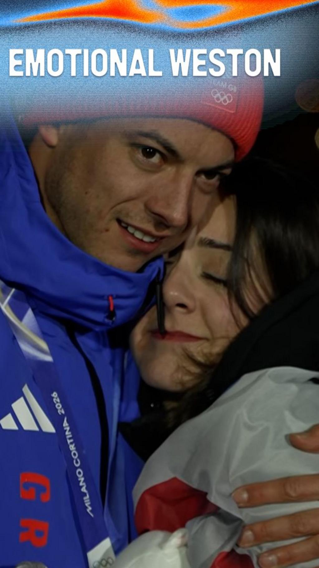Witness the heartwarming scenes of Matt Weston celebrating his skeleton gold medal with his fiancé and parents at the 2026 Winter Olympics.