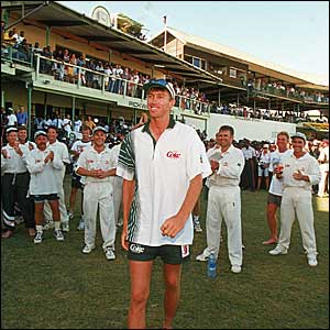 ![]() | Kicking on in the Caribbean Immaculate control of length and accuracy however, soon began to reap rewards. And on Australia�s 1994/5 tour of the West Indies eight wickets in the first Test in Barbados were enough to give Australia a lead in the series and earn him his first man-of-the-match award. |
