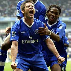 ![]() | Champions! On 30 April a 2-0 win at Bolton clinches the Premiership title for Chelsea. Frank Lampard scores both goals to seal a comfortable win. Roman Abramovich's millions help the club seal only the second league win in their 100-year history. |