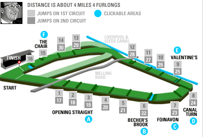 Although the first fence is wide enough to accommodate all 40 starters and is quite inviting, it is the pure speed that causes fallers. The year after Aldaniti and Bob Champion triumphed, they and nine others exited at the first fence.