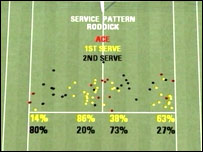By analysing each shot in a similar way - every point in each match on the two courts - a pattern can be built up to analyse key aspects of the match.