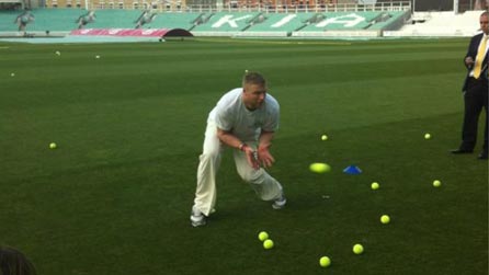 @sportrelief: Outside now. The big man needs to catch 43 tennis balls going at 100kph. Practice first mind you #freddies12