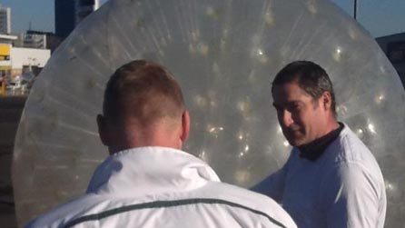 @sportrelief: Another go at the zorb now. 100m in under 30 seconds needed. GO ON THE BIG MAN