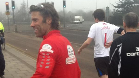 John ran from Faversham to Gravesend yesterday, but he wasn't alone - his wife Mel, Frank Skinner, Chris Moyles and a host of supporters ran with John during his second marathon.
