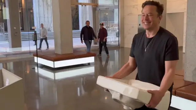 Mapema wiki hii Bw Musk alitoa video inayomuonyesha akitembea katika makao makuu ya Twitter huko San Francisco akiwa amebeba sinki la jikoni na nukuu: "Acha hilo lizame!"