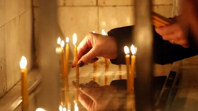 Juu ya meza sebuleni, Tina - si jina lake halisi - amefanya onyesho na miali ya chai, mayai ya rangi, mishumaa na msalaba mdogo wa mbao. Ni njia yake mwenyewe, ya karibu ya kuashiria Pasaka.