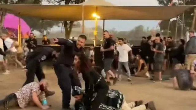 Wahudhuriaji wa tamasha walikuwa wakikimbia pande zote, lakini wengine walikuwa bado ndani ya safu ya watu wenye silaha