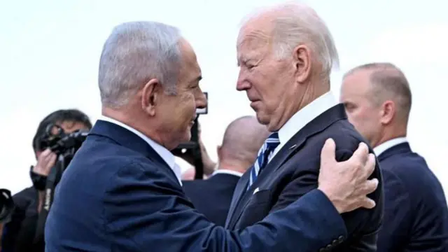 Chini ya wiki mbili baada ya shambulio la Oktoba 7, Biden alielekea Israeli na kumkumbatia Netanyahu kwenye lami huko Tel Aviv.