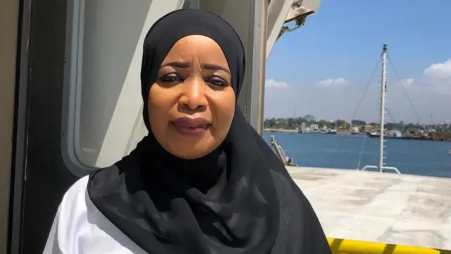 Huyu ni mwanamke ambaye amevalia koti la ujasiri na kuwa nahodha pekee wa kike katika kivuko huko pwani ya Kenya.