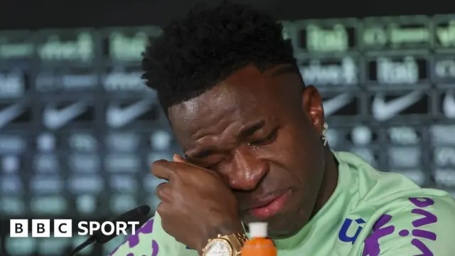 Brazil walikuwa wametoka kuifunga England 1-0 mwezi uliopita wakati wanahabari walipomwendea Vinicius Jr kwa mahojiano katika eneo la mchanganyiko la Wembley.