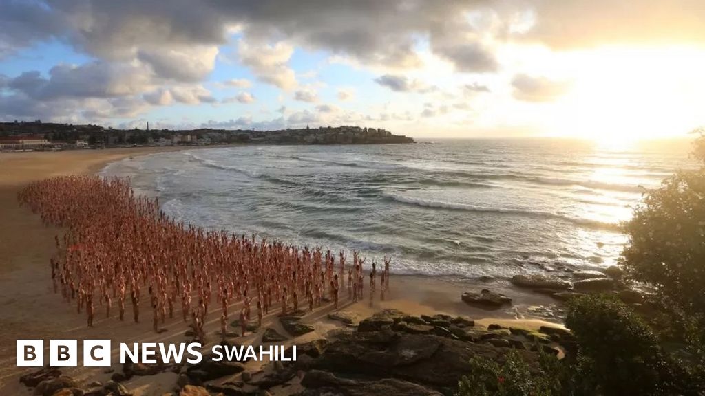 Watu wapatao 2,500 wamejitolea kupiga picha za utupu wakati jua lilipochomoza mapema asubuhi kwenye ufukwe wa Bond mjini Sydney Australia kwa ajili ya kazi ya Sanaa iliyoandaliwa ili kuongeza ufahamu wa saratani ya ngozi .