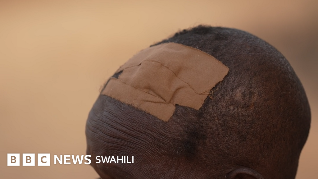 Sarah Peter anauguza jeraha la kichwa alilopata baada ya kupigwa kichwani na mtutu wa bunduki.