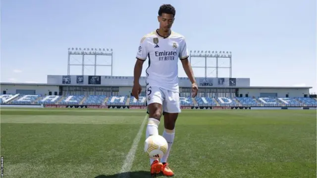 Mmoja wa wachezaji waliofanya vizuri kwenye Kombe la Dunia mwaka jana nchini Qatar, Bellingham alikua kijana wa tatu kuuzwa kwa bei ghali zaidi katika historia - na mchezaji wa pili wa Uingereza ghali zaidi wakati wote - alipojiunga na Real Madrid kwa euro 103m za awali (£88.5).