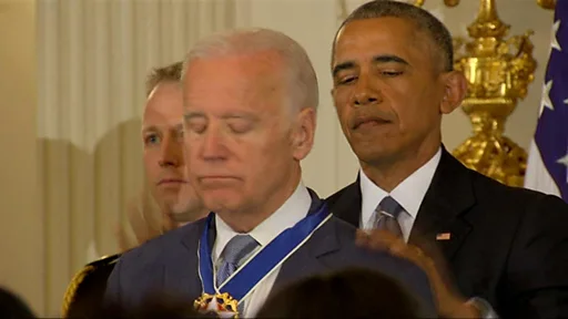 Biden, ambaye alionekana kushangazwa na hatua hiyo, alitokwa na machozi alipokuwa anatunukiwa medali hiyo.