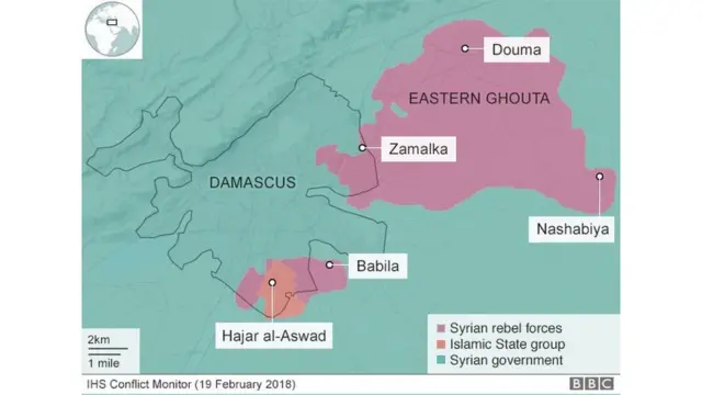 Waasi wanaopiagana, wamezingirwa karibu na mji mkuu wa Damascus, ambako raia laki tatu na 93,000, wamekwama, huku mashambulizi makali yakifanywa na majeshi ya serikali yanayoungwa mkono na Urusi.