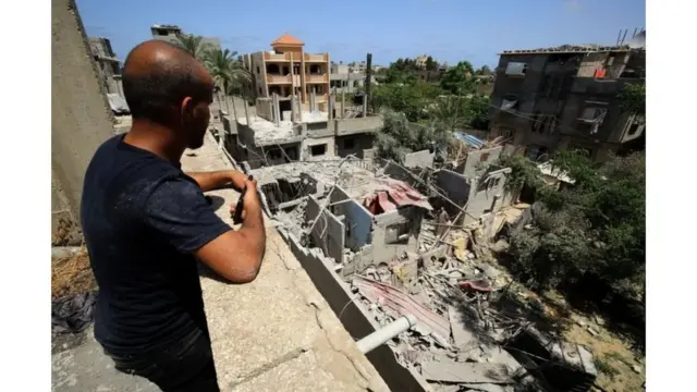 Baada ya kusitishwa kwa mapigano, raia wa Palestina huko Gaza ambao wamekuwa wakijificha kila wakati wakihofia kuuawa, walitoka nje na kwenda kuangalia kile kilichofanywa na jirani yake Israeli.