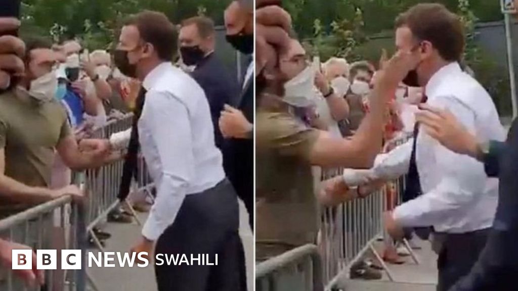 Rais wa Ufaransa alikuwa akitembea nje ya shule iliyopo katika mji wa kaskazini wa Tain-l'Hermitage alipozabwa kofi na mtu aliyekuwa kwenye kundi la watu waliokua wamesimama nyuma ya uzio wa chuma kwenye eneo la shule hiyo.