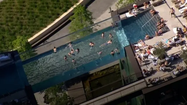 Mita 35 kutoka ardhini kuna kidimbwi cha kuogelea kilichotengenezwa angani ambapo unaweza kumuona anayeogelea kutoka pande zote - ikimaanisha kutoka juu, kutoka chini na upande upande.