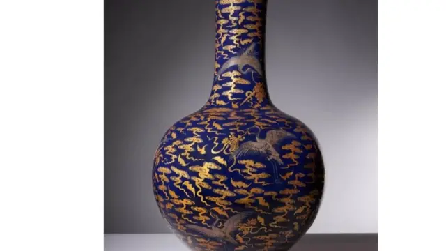Chombo hicho, kilichopakwa rangi ya buluu na kupambwa kwa dhahabu na fedha, kilitengenezwa ili kupamba jumba la kifalme la Mfalme Xianlong wa China.