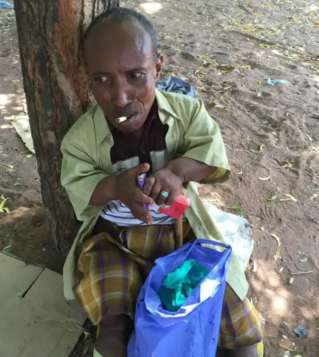 Kutokana na upweke, yeye hutumia muda wake mwingi akitafuna miraa na kuvuta sigara.