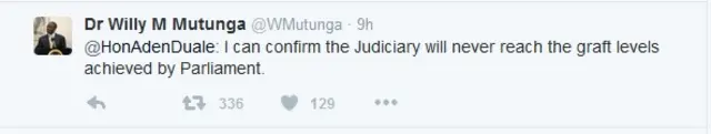 Akimjibu, Jaji Mutunga alisema: “Ninaweza kuthibitisha kwamba idara ya mahakama haitawahi kufikia viwango vya ufisadi ambavyo vimefikiwa na Bunge.”