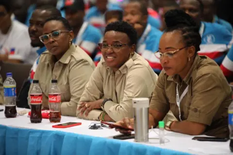 Maelezo ya picha, Wajumbe wa Baraza Kuu la Chadema kuchagua mgombea wa Chadema Wajumbe wa Baraza Kuu la chama kikuu cha upinzani nchini Tanzania Chadema, wameanza zoezi la kupiga kura ili kupendekeza jina la atakayekuwa mgombea wao wa urais.