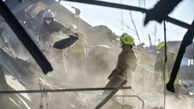 Maelezo ya picha, Rais Zelensky Rais wa Ukraine Volodymyr Zelensky amesema nini kuhusu mlipuko wa kituo cha maduka katika hotuba yake ya kila siku jana usiku.