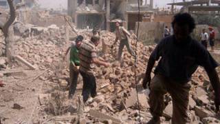 Фаъъолон аз ба тӯп баста шудани шадиди шаҳр, ки мунҷар ба кушта шудани 20 нафар шуд, хабар доданд ва видиюҳое дар шабакаҳои иҷтимоъӣ аз ин ҳамалот мунташир шуда, ки мустақилан ба таъйиди Би-би-сӣ нарасидааст.