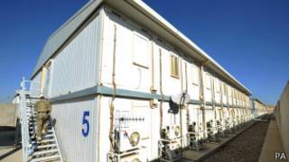Бар асоси мадорике, ки Би-би-сӣ дар ихтиёр дорад, боздоштиёни афғон дар зиндонҳои муваққат дар ин урдугоҳ маҳбус ҳастанд.