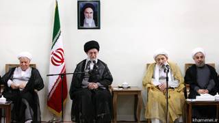 Аз ҷумлаи шиъорҳое, ки Оқои Хоминаӣ дар дидор бо аъзои Маҷлиси хибрагон матраҳ карда, "ғуддаи саратонӣ будани Исроил" ва "шайтони бузург будани Омрико" аст.
