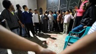 Ҳувияти ду муҳоҷиме , ки савори як мутурсиклет буданд ва мардумеро, ки калисоро тарк мекарданд ба рагбори гулӯла бастанд, рӯшан нест.