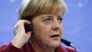 Хонуми Меркел аз Омрико хостааст дар бораи гузоришҳои мунташиршуда аз амалиёти маҳрамонаи Омрико барои шунуди муколимоти телефунӣ ва диҷитол тавзеҳ диҳад.
