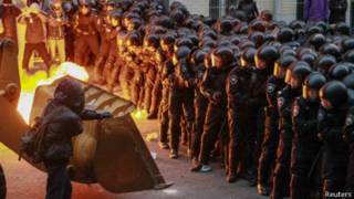 Муътаризон дар Укройн бо таҷаммуъ дар майдони Истиқлол дар Киев, пойтахти он кишвар, барои чандумин рӯзи мутаволӣ дар мухолифат бо давлат даст ба эътироз задаанд.